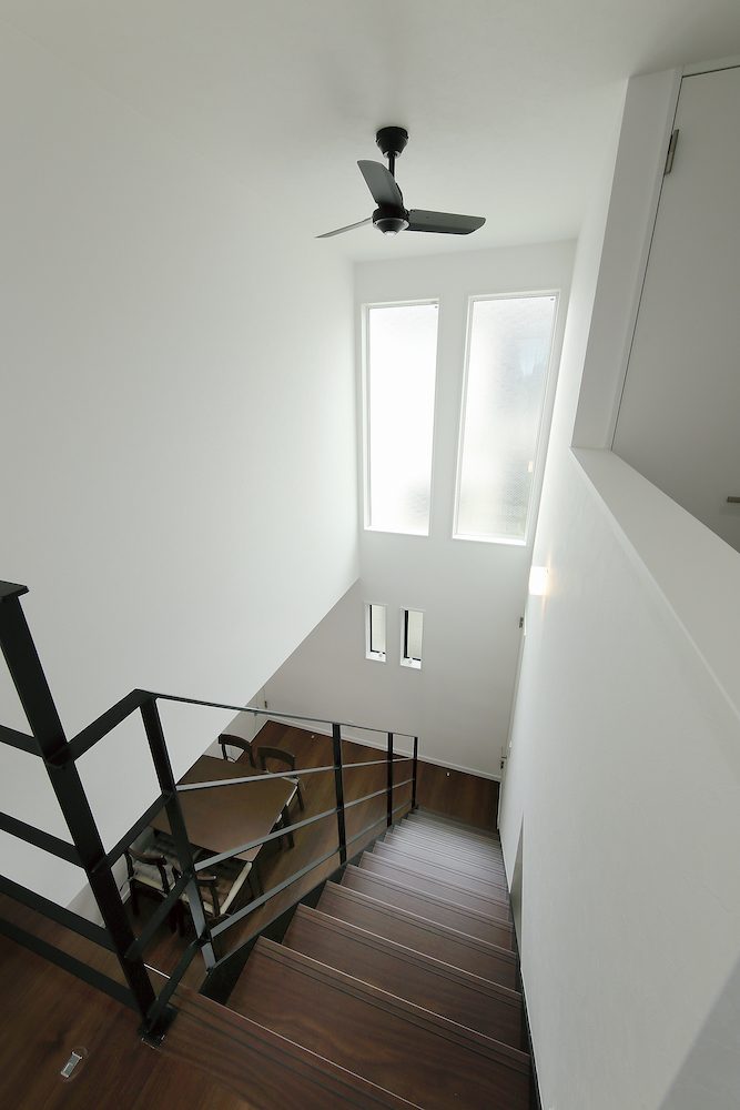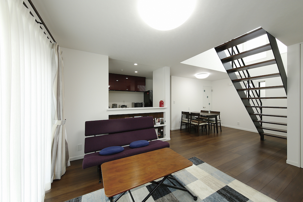 南面には日光がたっぷり降り注ぐベランダを設けながら、共働きのご夫妻が安心して洗濯物ができるようインナーバルコニーを設置しました。そして開放的な空間にしたいというKさまのご要望を実現すべく、北面には吹き抜けをしつらえました。「北側なのに、かなり明るい!」と評判です。
