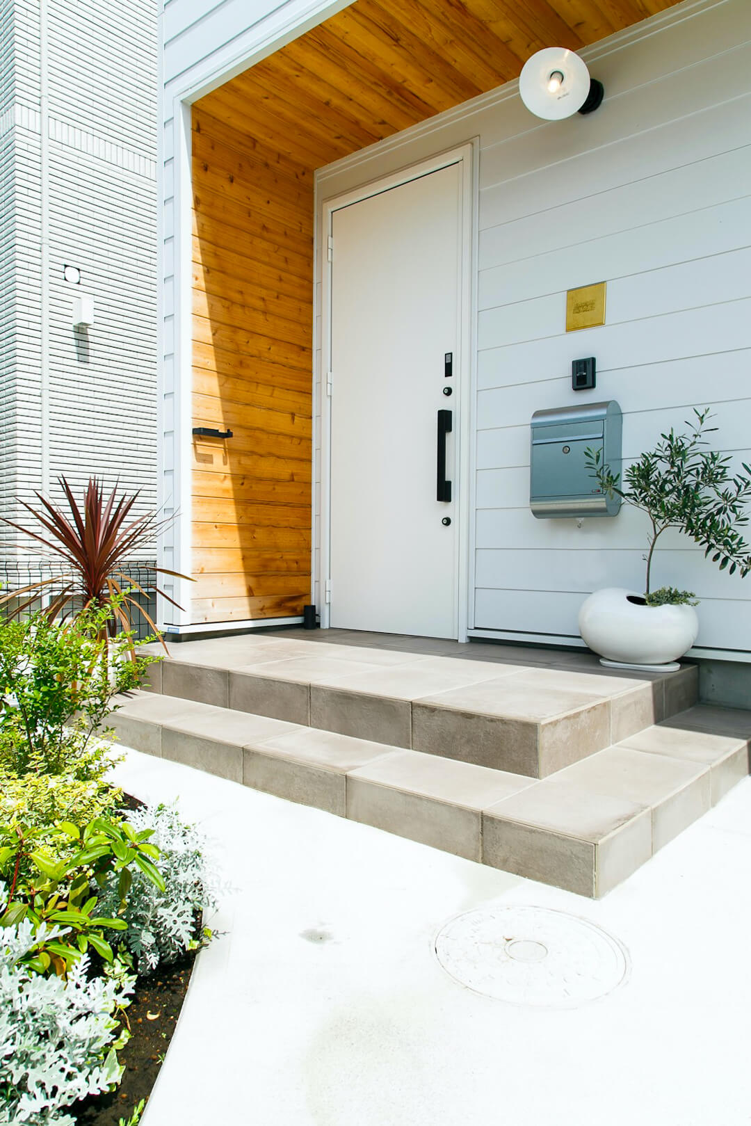 また、袖壁の一部にはアイアンの傘立てを取り付けたほか、カーポートは外観の雰囲気に合う、LIXIL製の「SC」というものを採用しました。