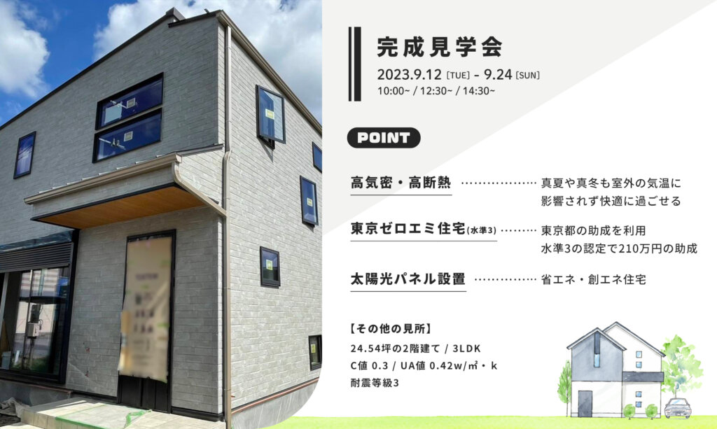 <終了>【完成見学会】昭島市で24.54坪の2階建て、3LDKの高気密・高断熱のお家の見学会を開催!