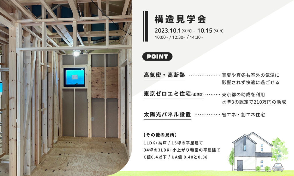 この度、東京都八王子市・あきる野市の物件の「構造見学会」を開催いたします。