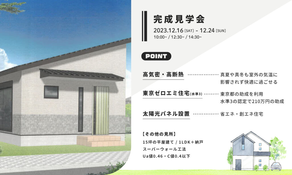 <終了>【平屋】八王子市で15坪の1LDK+納戸、平屋建ての完成見学会を開催!