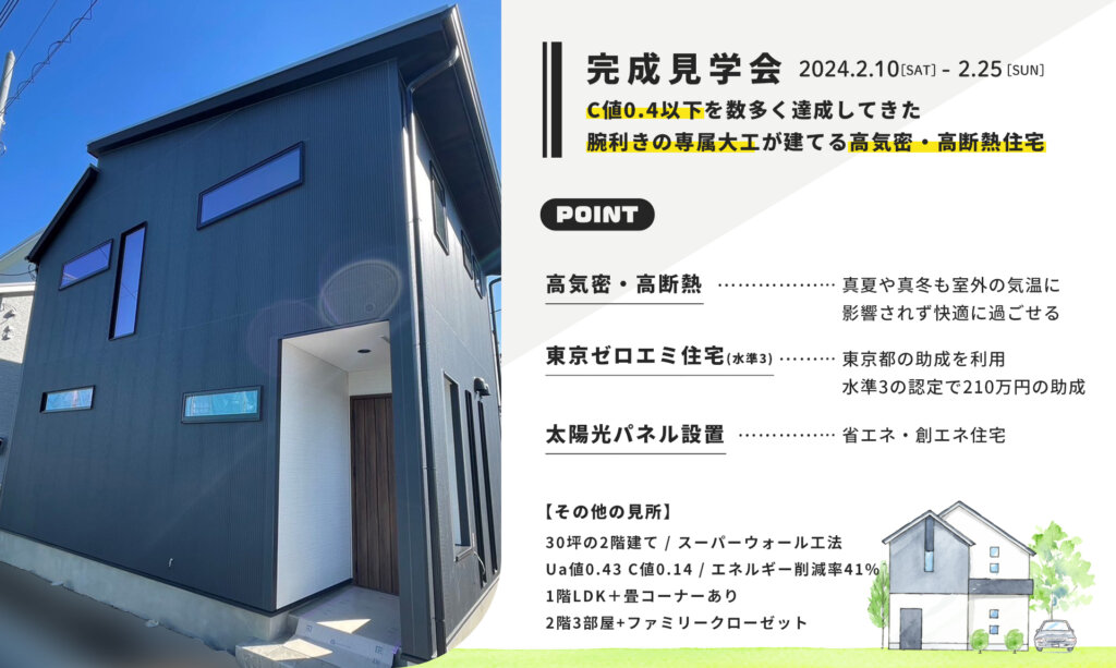 <終了>【Ua値0.43/C値0.14】日野市で30.96坪のスーパーウォール工法の家の完成見学会を開催!