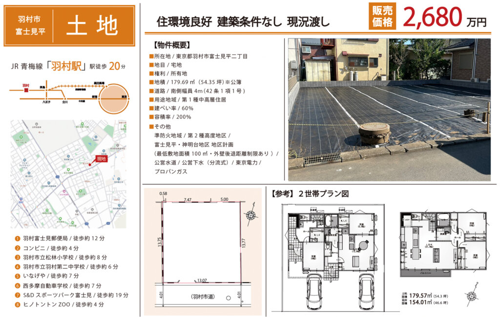 【売地情報】羽村市富士見平|約54坪|2,680万円